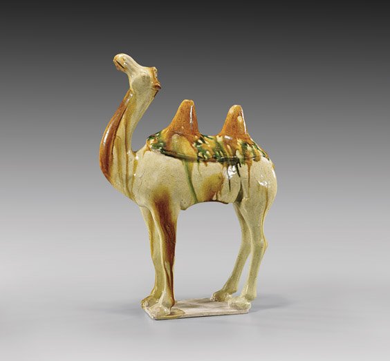 This camel appears to belong to a group of tang pottery that often includes travellers, musicians and camel riders.
